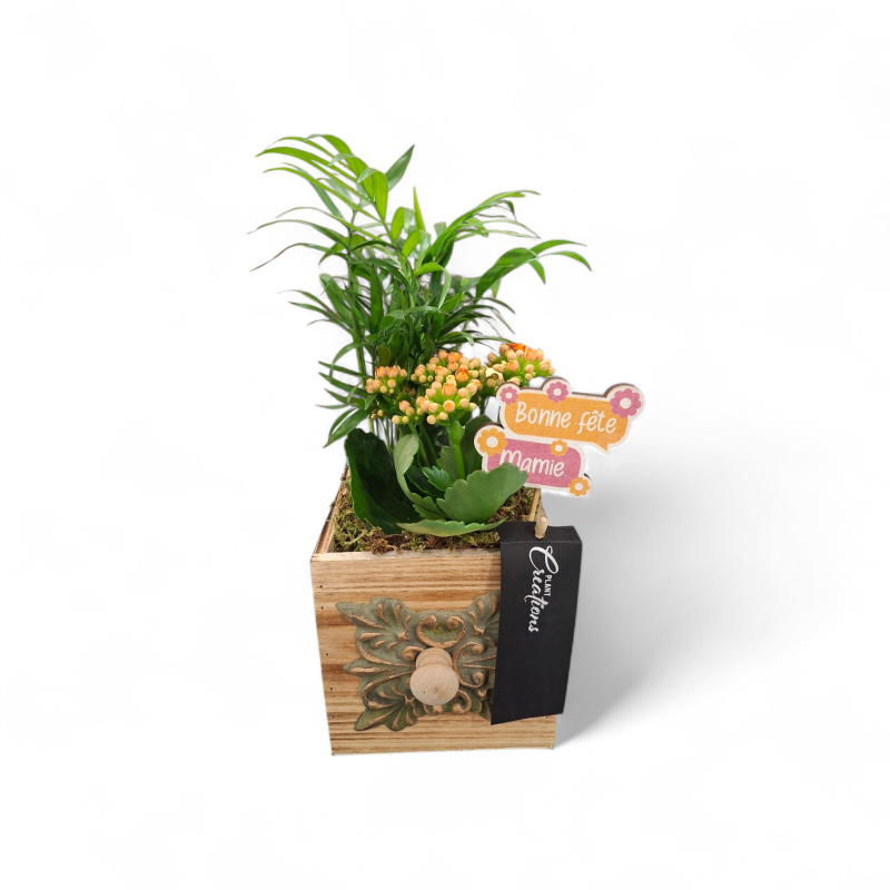 Cette petite composition de plantes arrangées est très mignonne à offrir pour la fête des mamies !