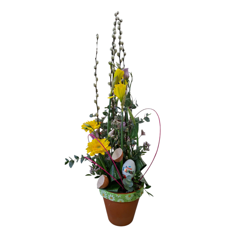 Composition hauteur pour célébrer Pâques en fleurs et en chocolat!
